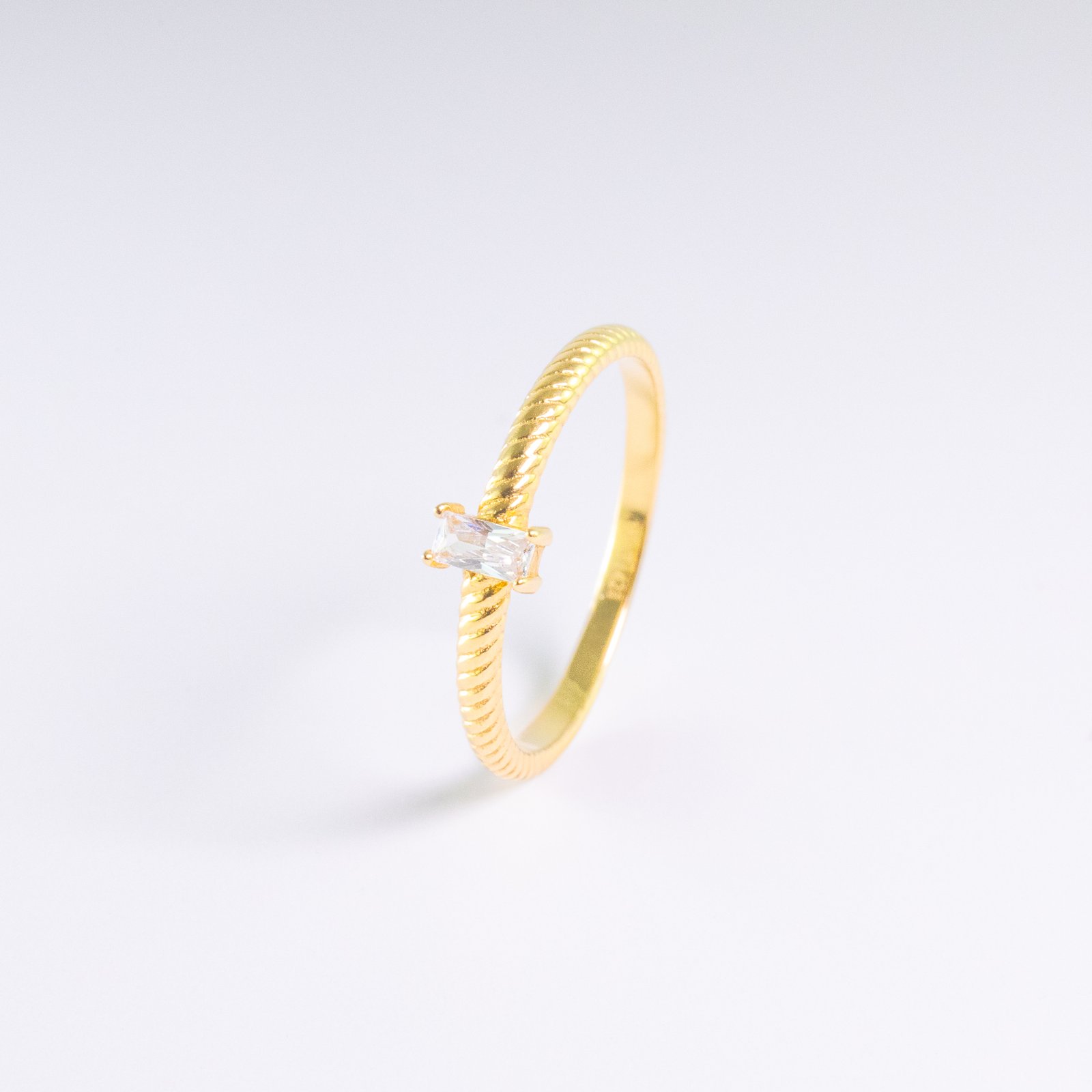 Minimal 18ct gold baguette ring designed for timeless style and modern elegance.